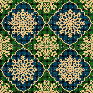 Festive Gold Snowflake Christmas Plaid in Blue and Green