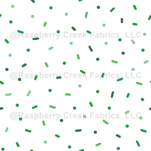 A delightful tossed confetti pattern featuring sprinkles and dots in tonal shades of green.