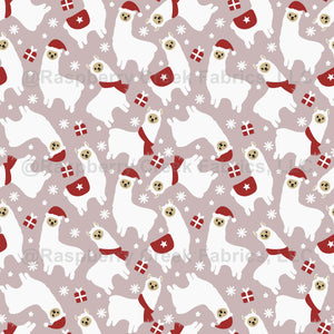 "Festive Llamas" is a delightful and whimsical seamless pattern featuring illustrations of llamas adorned with festive accessories, such as Santa hats and colorful decorations. This design captures the playful and merry spirit, making it a charming choice for projects that celebrate the holiday season, fun, and the quirky appeal of these adorable animals.