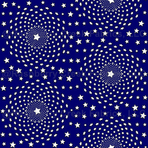 Inspired by fireworks and by the stars on the American flag, this design features an expanding circular stars design on midnight blue that repeats.