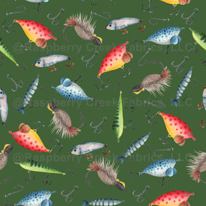 Fishing Lures on Forest Green - large