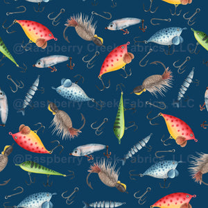Fishing Lures on Navy Blue