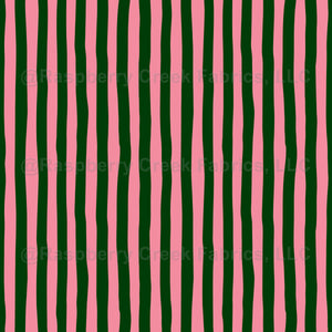 Flamingo Pink & Forest Green Wonky Stripes