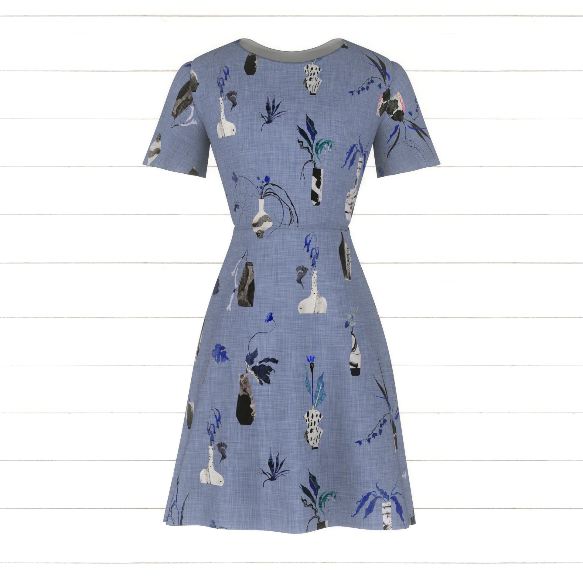 Delicate floral arrangements in hues of blue, with subtle hints of green, turquoise, and coral, set in harmony in bold black and white vases. Refined and sophisticated, this design was lovingly made using hand painted paper cutouts with a variety of paints and papers for texture, inspired by my love for flower arranging and ceramics.