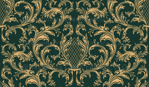 Luxury vintage seamless pattern. Ornament with golden tracery silhouette of floral curls on green background. Baroque texture