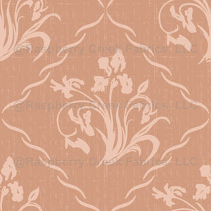 Floral Block Print Wallpaper - Apricot on Tan