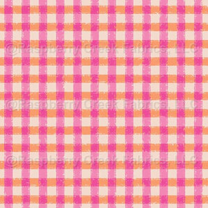Floral Bounty Sunset Gingham in pink and orange