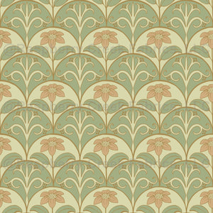 Pattern Villera is a fish scale pattern in gold, cream and peach