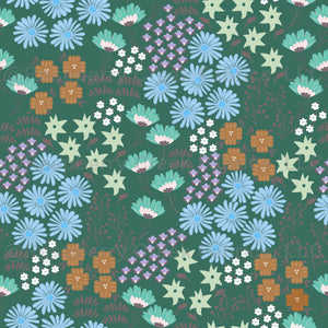 Floral Meadow Variety in Blue, Pale Green, Beige and Dark Green