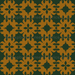 Floral Pattern, Tribal Flowers, Orange Gold and Dark Green