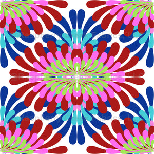Flourish Bloom in blue pink green and red wallpaper
