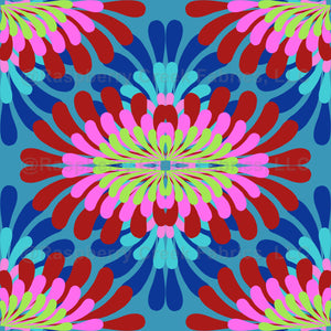 Flourish Bloom in Blue Red Pink on Blue Wallpaper