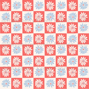 Flower Check Checkerboard Daisy Floral Red, White and Blue