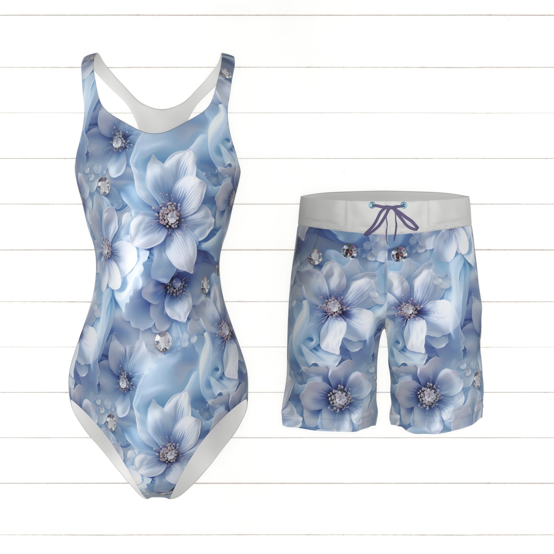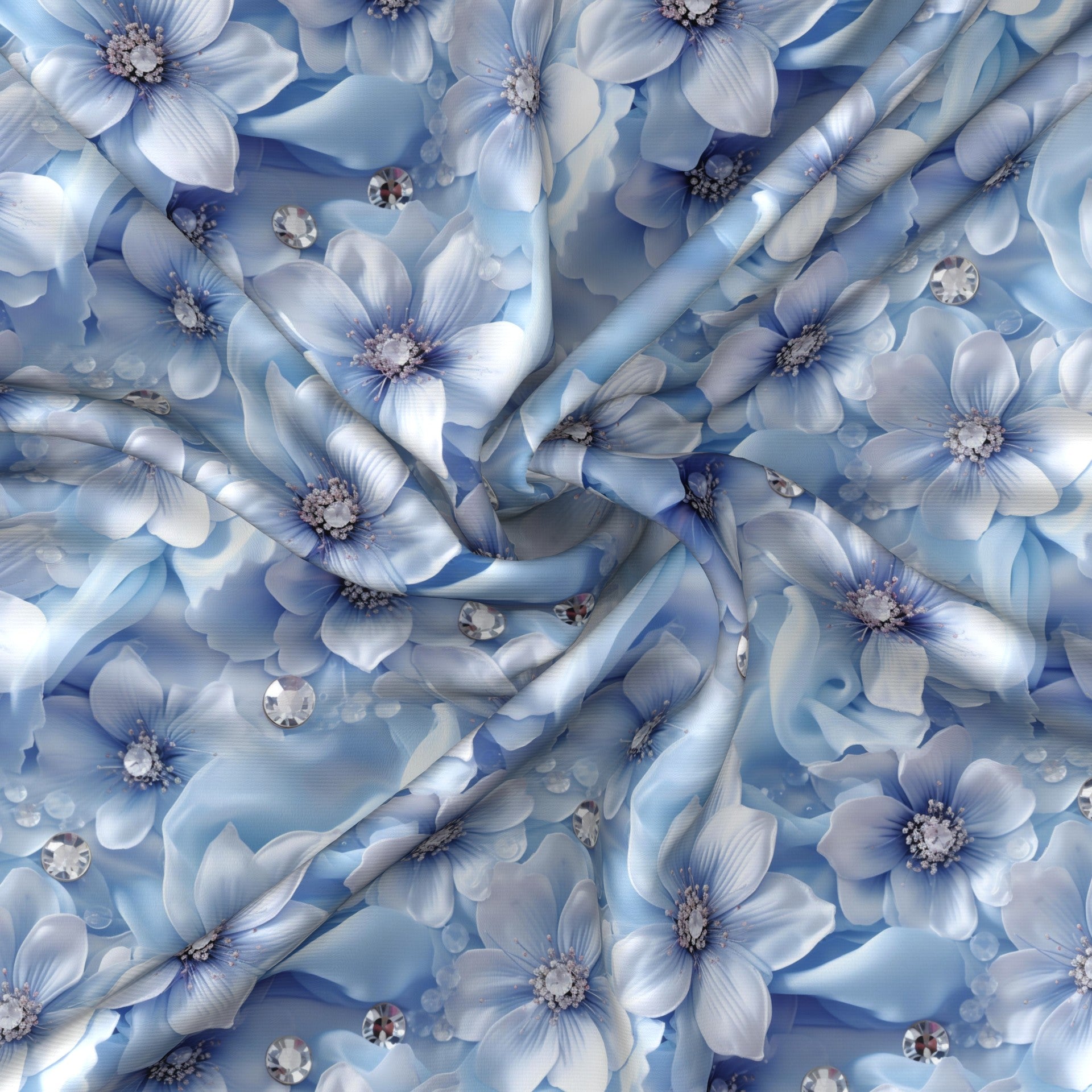 Flowers With Swarovski crystals chiffon fabric pattern