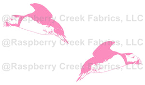 Stamp effect from photo taken by the artist at Machias Seal Island. Puffins are about 4 inches wide; you may wish to scale down for children's clothing. Coordinates with Pinksicle Pink solid in the Pinksicle Garden collection.
