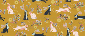 Folk Art Easter Bunny with Dandelion mustard yellow - SpringHarmony Collection