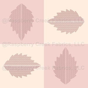 A gentle, folk-inspired botanical grid design with stylized leaves arranged on a soft alternating oyster pink and cream checkerboard.