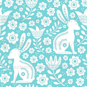 Folk White Rabbits on Aqua Blue