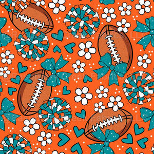 Football Cheer Bows and PomPoms Orange and Aqua Blue