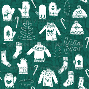 Forest Green and White Textured Winter Woollens