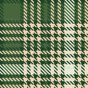 Forest green houndstooth tartan with cream accents. Ideal for traditional Christmas apparel and festive accessories.
