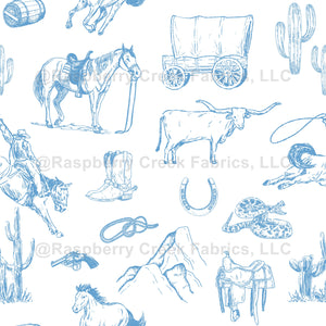 French Blue on White Cowboy Toile de Jouy