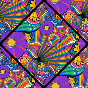 Our French Coutry Floral Tangle in psychedelic rainbow colors adds a touch of hippie elegance to your project in this diamond tile pattern.