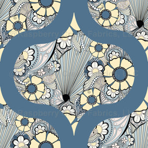 Our French Country Floral Tangle Yellow adds a touch of mid mod elegance to your project in this retro Ogee pattern.