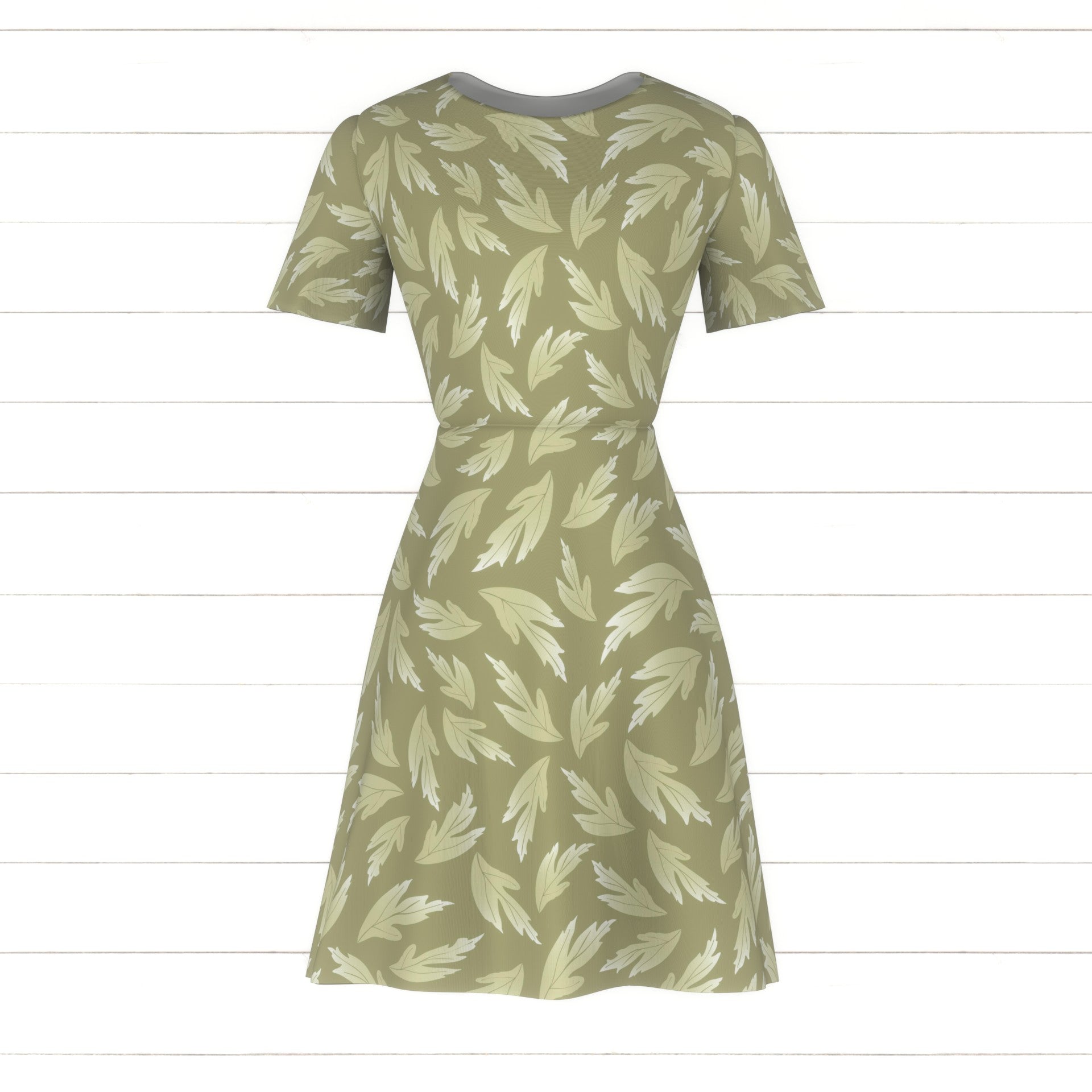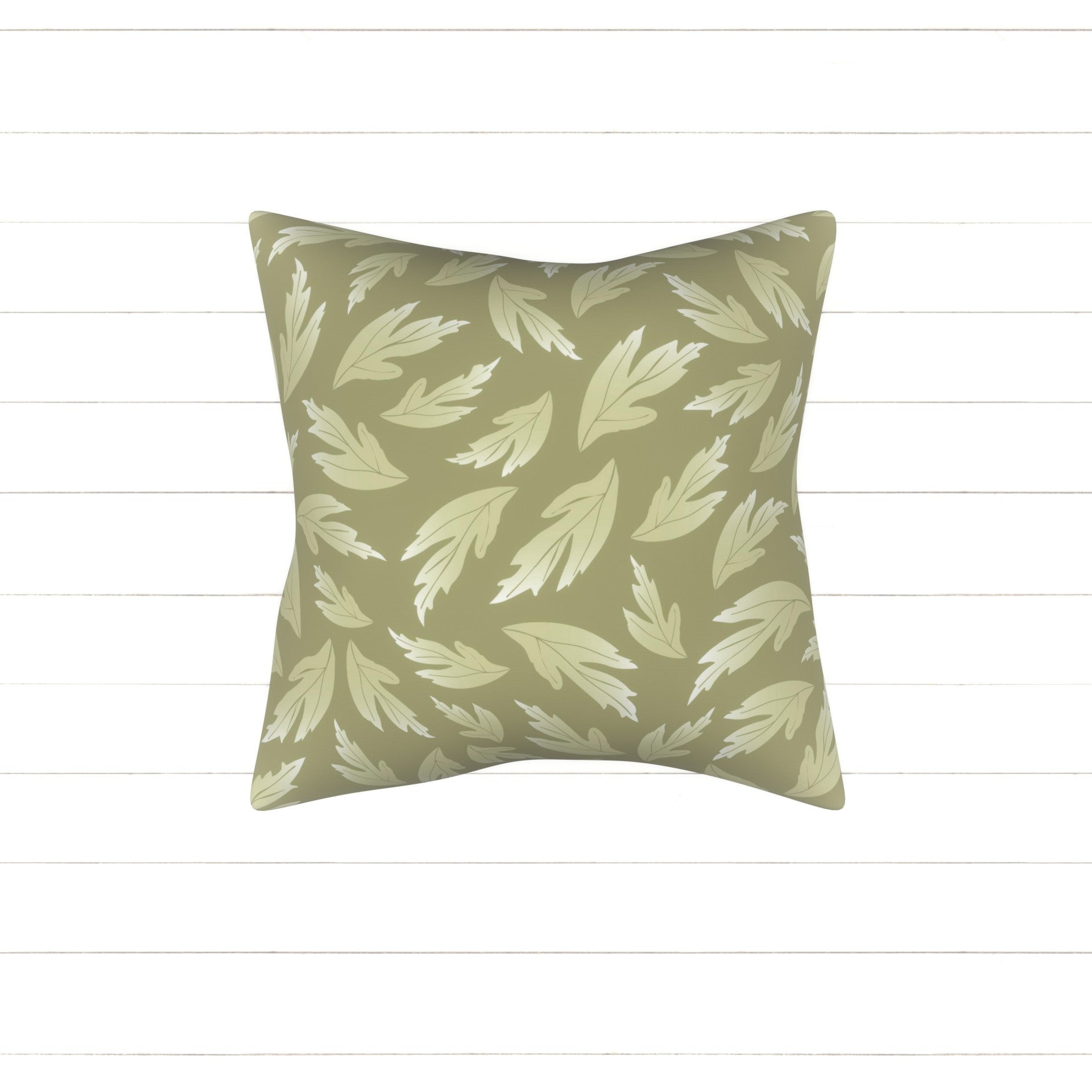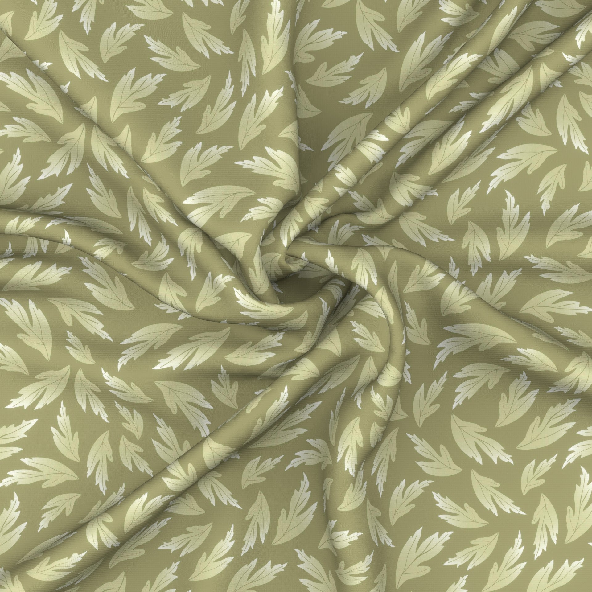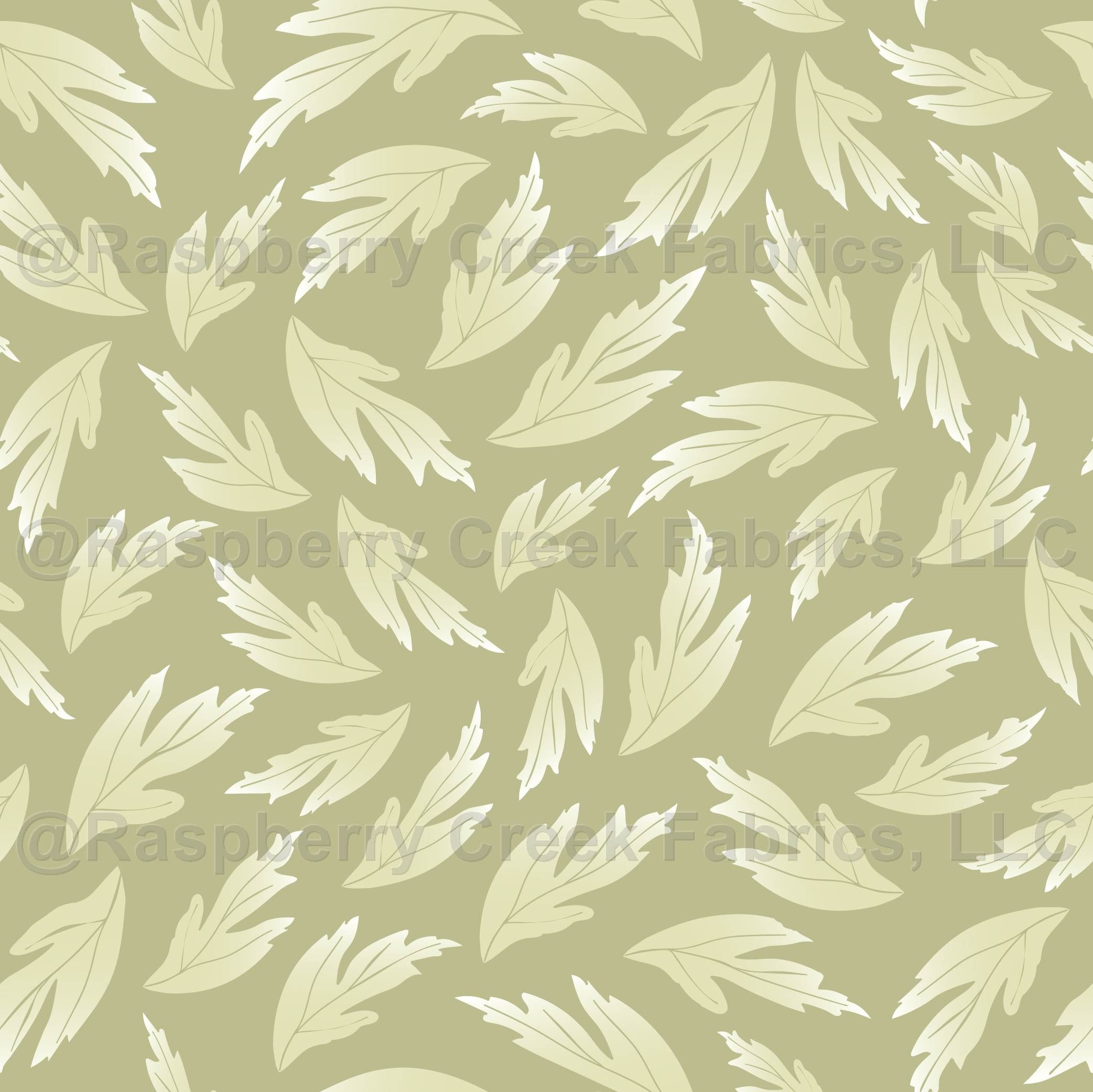 Multi-directional monochrome pattern with playfully tossed green cream buttercup flower leaves set on a solid olive sage green background. Matches the French Country Meadow patterns.