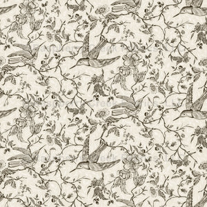 French Country Vintage Birds and Roses Taupe Brown