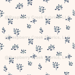French roses - watercolor ditsy dainty flowers in blue gray and cream
