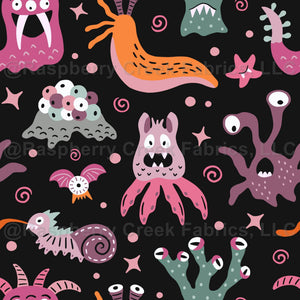 Friendly and cute monsters that have come from outer space. A colorful pattern for kids clothing or accesories.