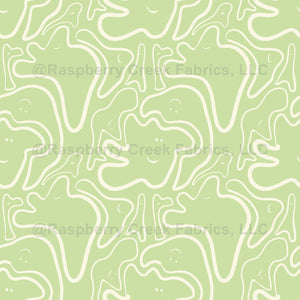 Whimsical hand drawn ghost faces on a pastel green background. Perfect for kids' rooms.