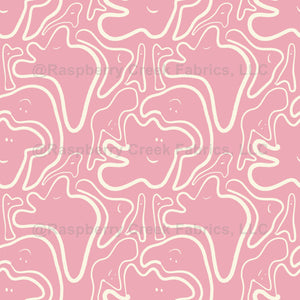 Whimsical hand drawn ghost faces on a pastel pink background. Perfect for kids' rooms.