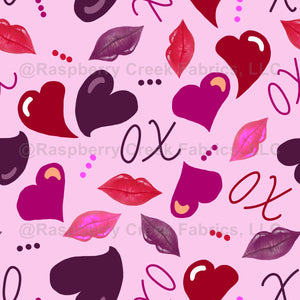 Funny Valentines -Lips, Hearts, and XOs on Pink