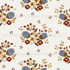 Vintage Garden Floral Block Print - Gold Blue Crimson