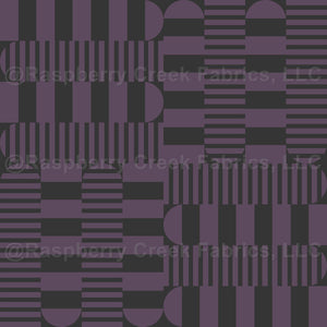 Geometric Cheater Quilt with broader stripes in halfround rectangles. Modern twist on classic squares – cheater quilt collection - black eggplant purple – retro 70s blankets, kitchen towels, shopping bags, capes, jackets