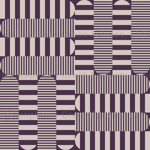 Geometric Cheater Quilt with stripes in halfround rectangles. Modern twist on classic squares – cheater quilt collection - eggplant purple white truffle – Retro 70s blankets, kitchen towels, shopping bags, capes, jackets