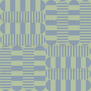 Geometric Cheater Quilt with stripes in rounded rectangles. Modern twist on classic squares – cheater quilt collection - dusty blue celadon green – retro 70s blankets, kitchen towels, shopping bags, capes, jackets