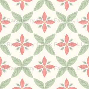 This design features geometric pink flowers and green leaves. This pattern is great for home decor projects, quilts, and more!
