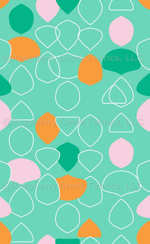 Geometric Rock shapes, scattered, green, white, orange, pink