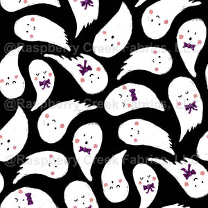 A spooky cute black and white halloween design with ghosts. All dressed up in the cutest bowties