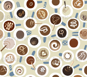 Celebrating coffee — each cup tied to life’s myriad of important little events. Enjoy each one featured on this playful pattern; perfect for apparel, DIY/gift projects, home decor and more.