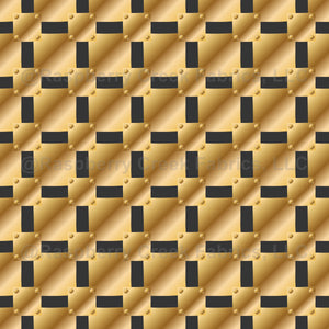 Gold on charcoal riveted square metal plates in a gradient Industrial texture with metallic shine effect, for steampunk, modern décor, costumes, cosplay, quilting, unique fabric accents and projects.