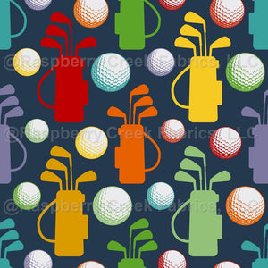 Golf Balls and Bags Retro Rainbow Colors on Navy