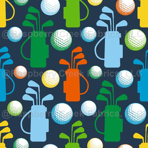 Golf Club Bags and Balls on Navy