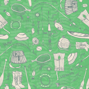 Gone Fishing Three Colour Bright Green and Cream