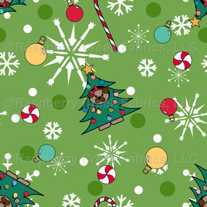 Good Bye Puggy is ready for the Holidays. Original Puggy character by me. Green background, matches Snow Day fabrics