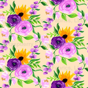 Gouache Painterly Purple Roses and Sunflower - Light Peach
