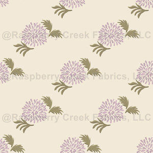 Gouache Pastel Purple Chrysanthemum Flower on a light beige color background.